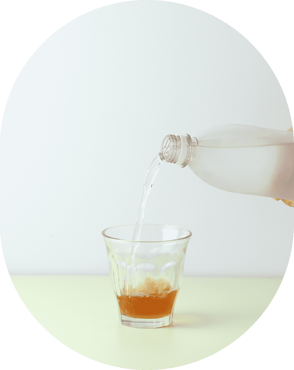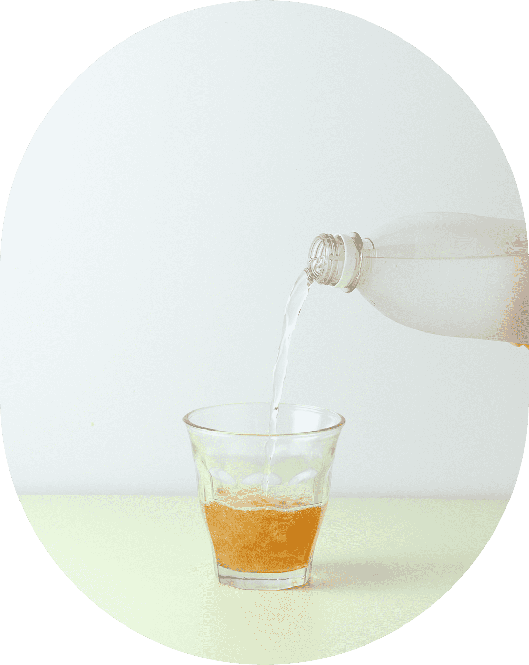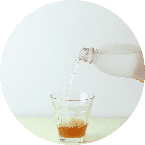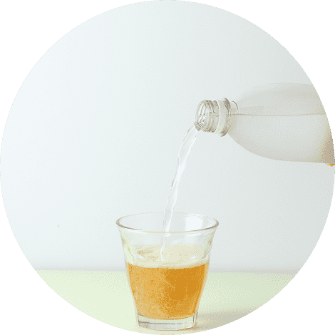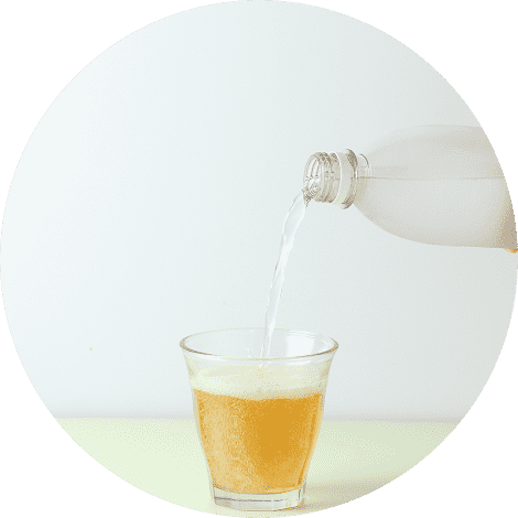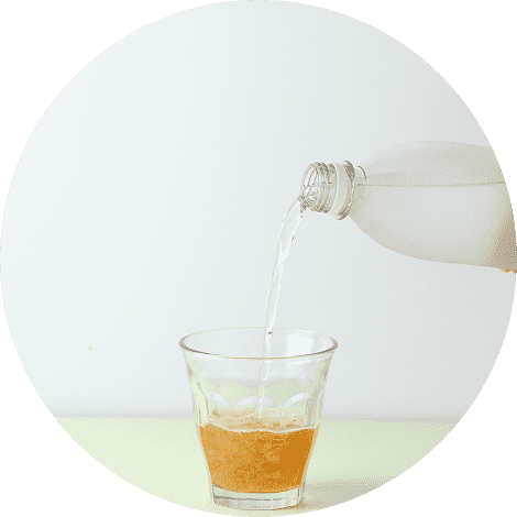 水、お湯、炭酸水などで